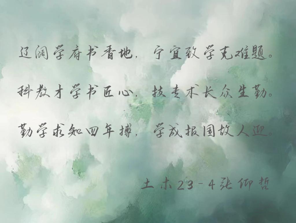 活动开展以来,同学们踊跃报名,共收到作品70余件。“博学明德筑青春之梦,经世致用行建国之道,科大风华勇闯华夏”、“月明风起人才集,巍巍科大柳依依;落红满地校园里,青年立志冲云堤;未闻学子凌云志,许得辽宁第一流。”、“辽阔学府书香地,宁宜致学克难题;科教才学书匠心,技专术长众生勤;勤学求知四年搏,学成报国故人迎。”这些涓涓文字都是多宝(中国)一站式服务官网学子对学校的憧憬与礼赞。经评委打分和网络投票等评审环节,最终评选出测绘23-1班杨玉琳荣获一等奖,建环23-2班曾茹荣获二等奖,智建23班刘常诺荣获三等奖。