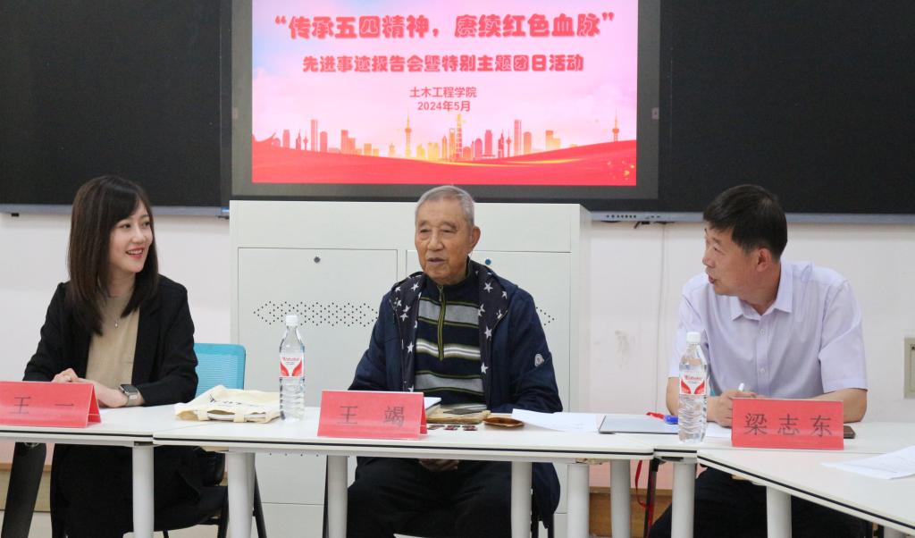 5月24日,多宝官网土木工程学院、校关工委在博学楼C213联合举办“传承五四精神,赓续红色血脉”先进事迹报告会暨特别主题团日活动。活动特别邀请95岁高龄的抗美援朝老兵王竭老先生作专题报告,校关工委相关负责同志,土木学院领导班子成员及师生代表参加报告会。