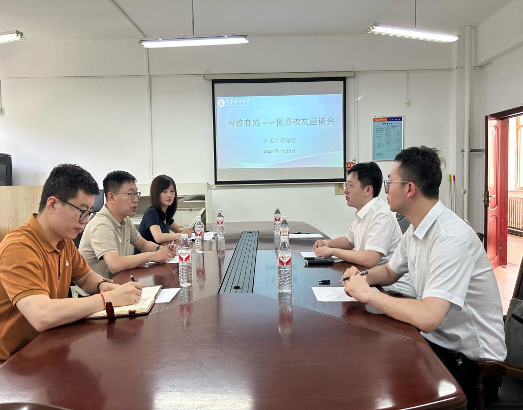7月10日,多宝官网土木工程学院于博观楼A312会议室举行“母校有约”——优秀校友座谈会。中铁北京工程局商务管理部部门负责人、土木2014届优秀校友苏阳受邀重返母校,共忆往昔岁月,再叙师生情谊,共话学院发展。学院领导班子成员、校友工作相关负责同志参加座谈会。